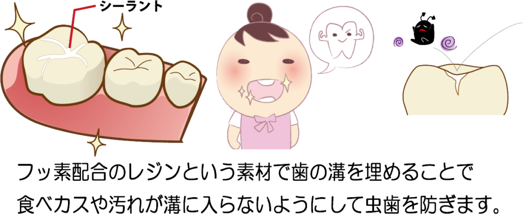 またシーラントも効果大です。(※初期虫歯なら保険適用です)